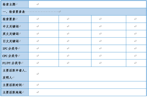 这一步主要将上述信息填写到基本检索要素表中,为后续检索提供指导和参考。但基本检索要素表确定后并不是一成不变的,后续一定会根据检索过程对基本检索要素表中的内容进行补充,作为后续补充检索之用。