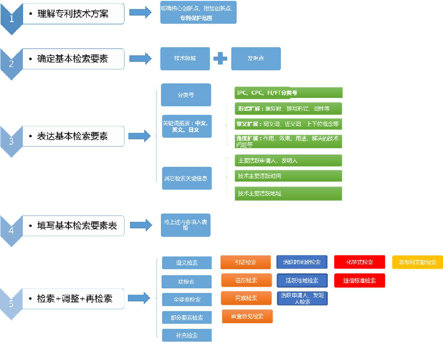 新创性检索的主要流程包括以下五个步骤: